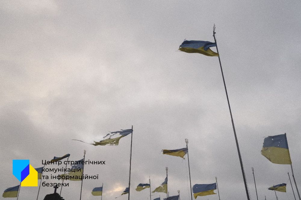 Але українців ніхто і ніщо не зламає, як і ці прапори, які попри все гордо тримаються вітру!