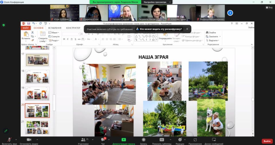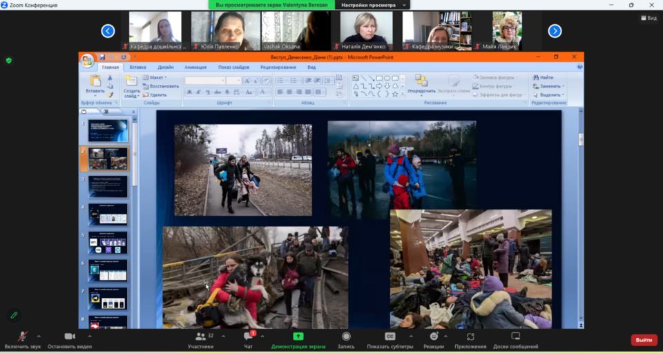 Доповіді професора Віденського університету імені Зигмунда Фройда Сальваторе Джакомуцці (Австрія), кураторки-документалістки Наронського археологічного музею Санди Віскіч (Хорватія), професорки Інституту педагогіки Університету імені Яна Кохановського в Кельцах Марії Лещенко (Польща), каністерапевтки, фахівчині з психосоціальної підтримки Міжнародної гуманітарної організації INTERSOS Людмили Мисяк, магістрантки ПНПУ імені В.Г. Короленка Діани Денисенко були присвячені актуальним проблемам сьогодення українського народу – освітнім викликам воєнного періоду.