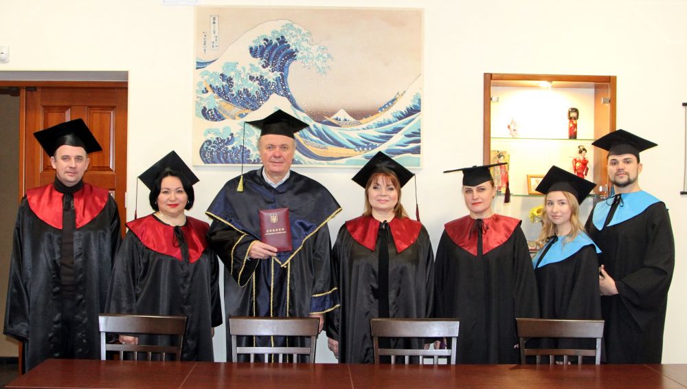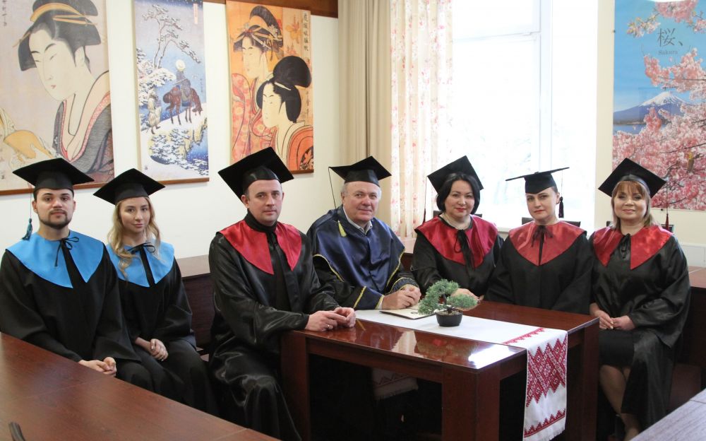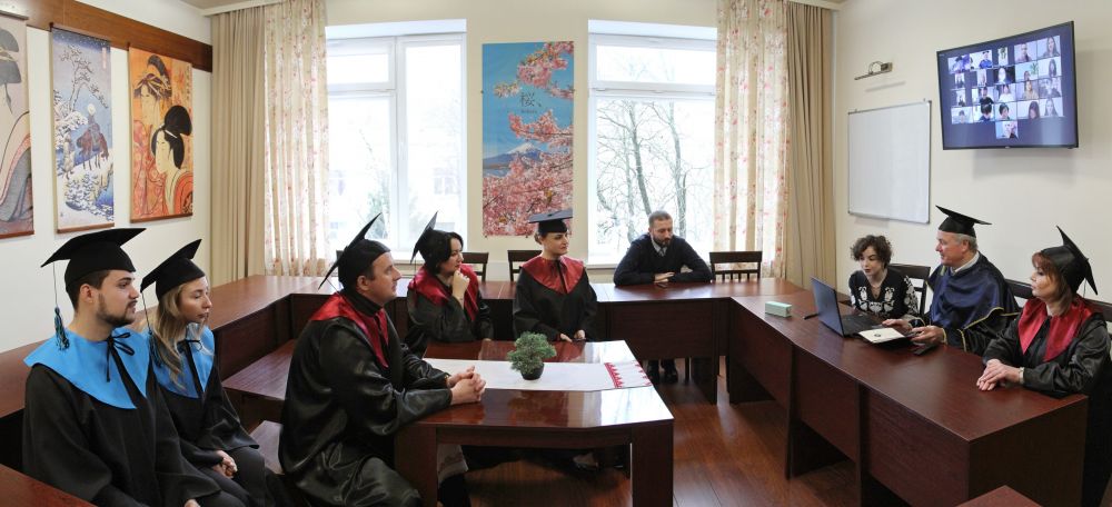 В аудиторії українсько-японської дружби «Sakura» ПНПУ імені В. Г. Короленка зібралися члени вченої ради університету: ректор професор Микола Степаненко; проректор із наукової роботи професор Сергій Шевчук; декан психолого-педагогічного факультету професор Наталія Сулаєва; декан факультету філології та журналістики доцент Оксана Кирильчук; завідувач кафедри світової літератури, професор, директор Науково-методичного центру якості вивчення англійської мови та зарубіжної літератури Ольга Ніколенко. ![]()