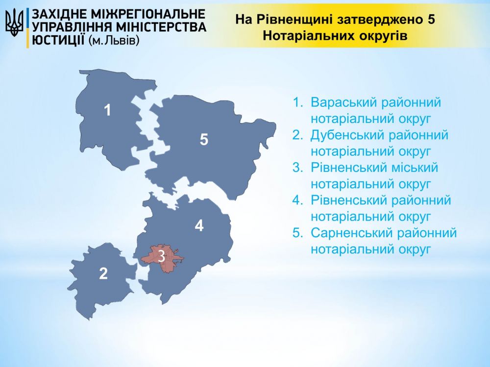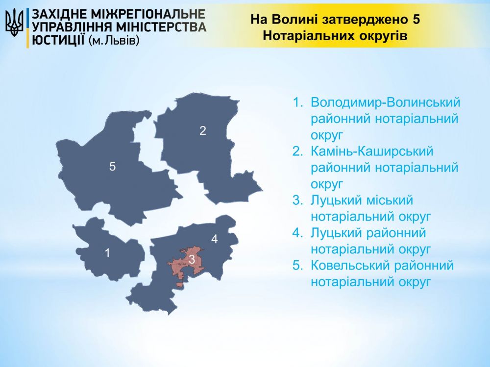 Затверджені нові нотаріальні округи у Волинській (5 округів), Львівській (8 округів) та Рівненській областях (5 округів)